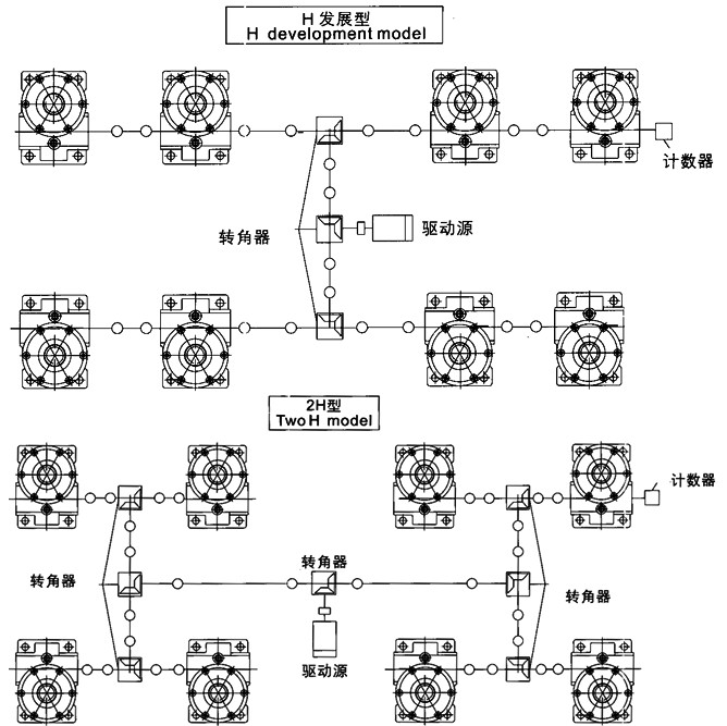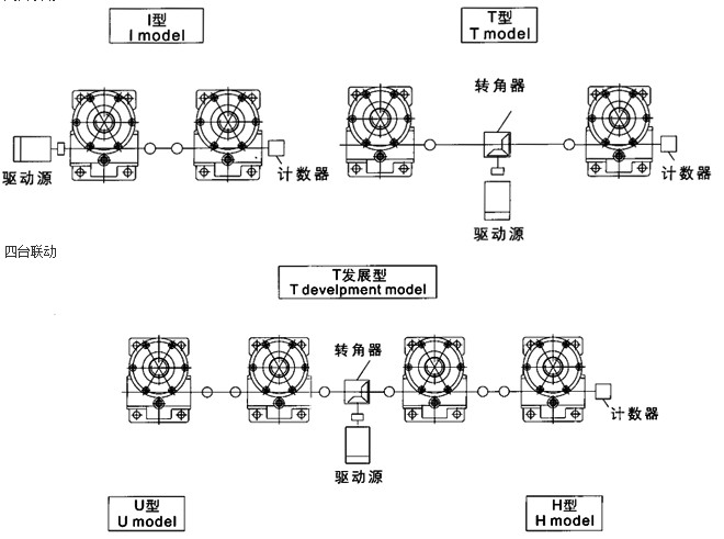 1、基本形式:螺母(蝸輪)轉動絲桿上下移動,此為普通型升降機安裝方式。